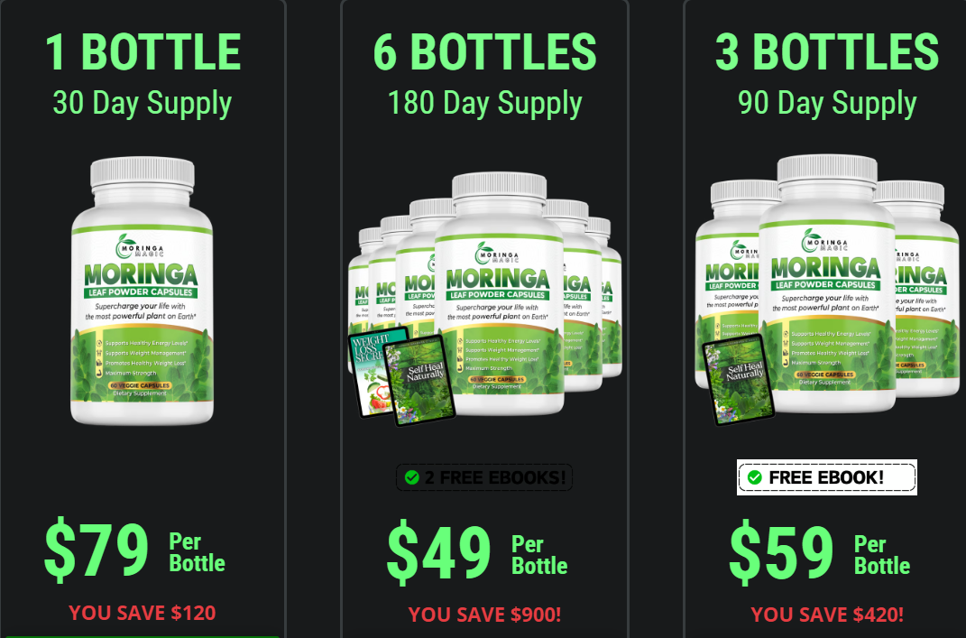 Fazit: Auch wenn Moringa Magic möglicherweise auf Amazon oder eBay erhältlich ist, ist es klüger, über die offizielle Website zu bestellen. So bist du immer sicher, den besten Preis, die originale Qualität und zusätzliche Gratis-Boni wie eBooks zu erhalten.