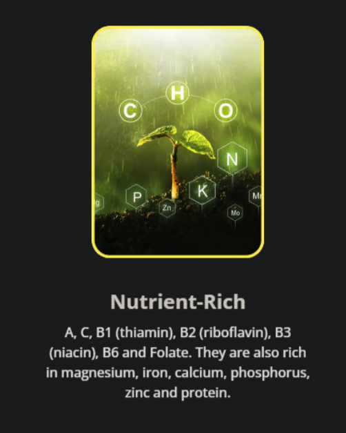 Darüber hinaus ist es reich an Magnesium, Eisen, Kalzium, Phosphor, Zink und Proteinen.